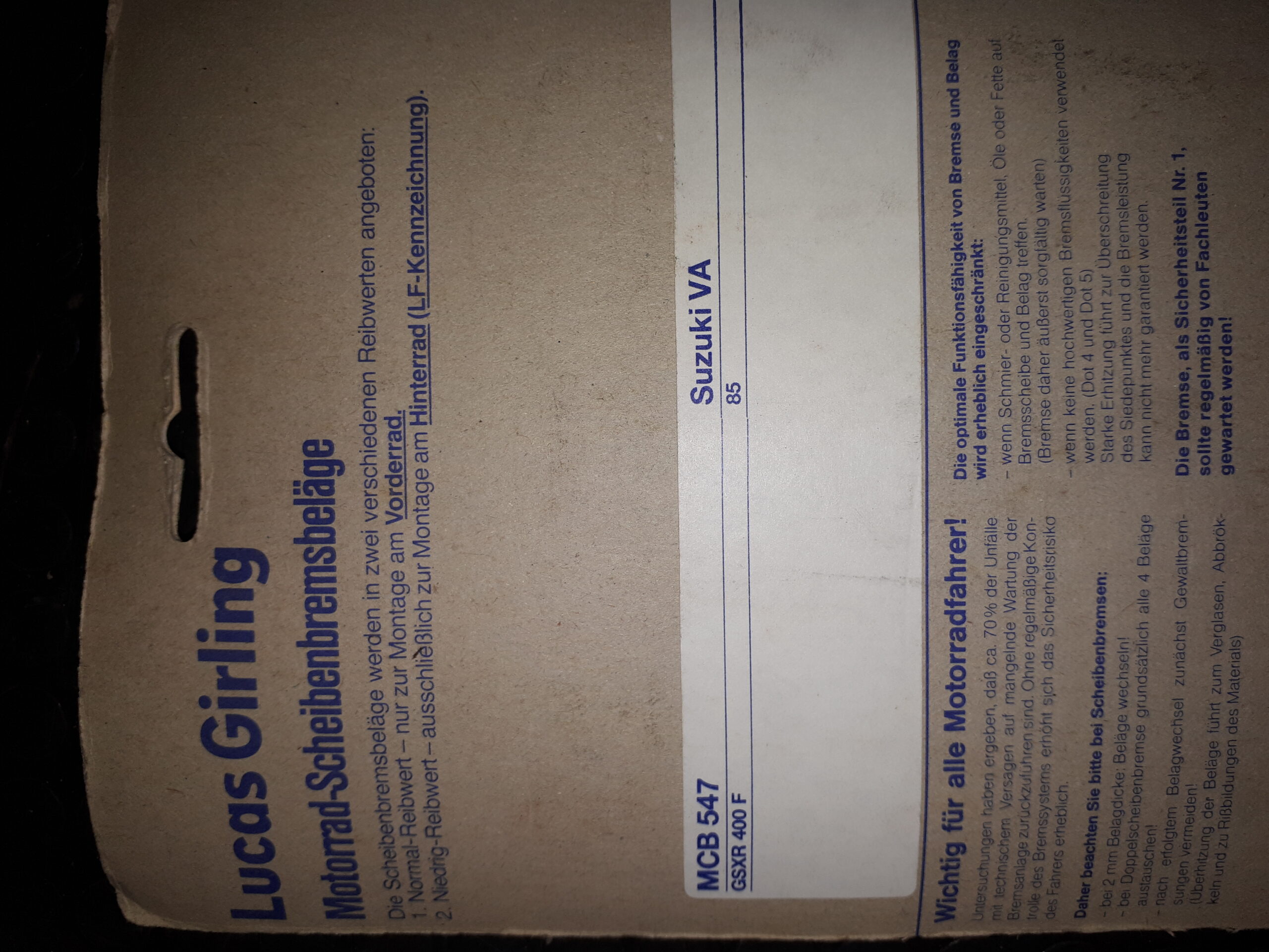 BREMSBELÄGE,GIRLING/LUCAS/JURID ECT.