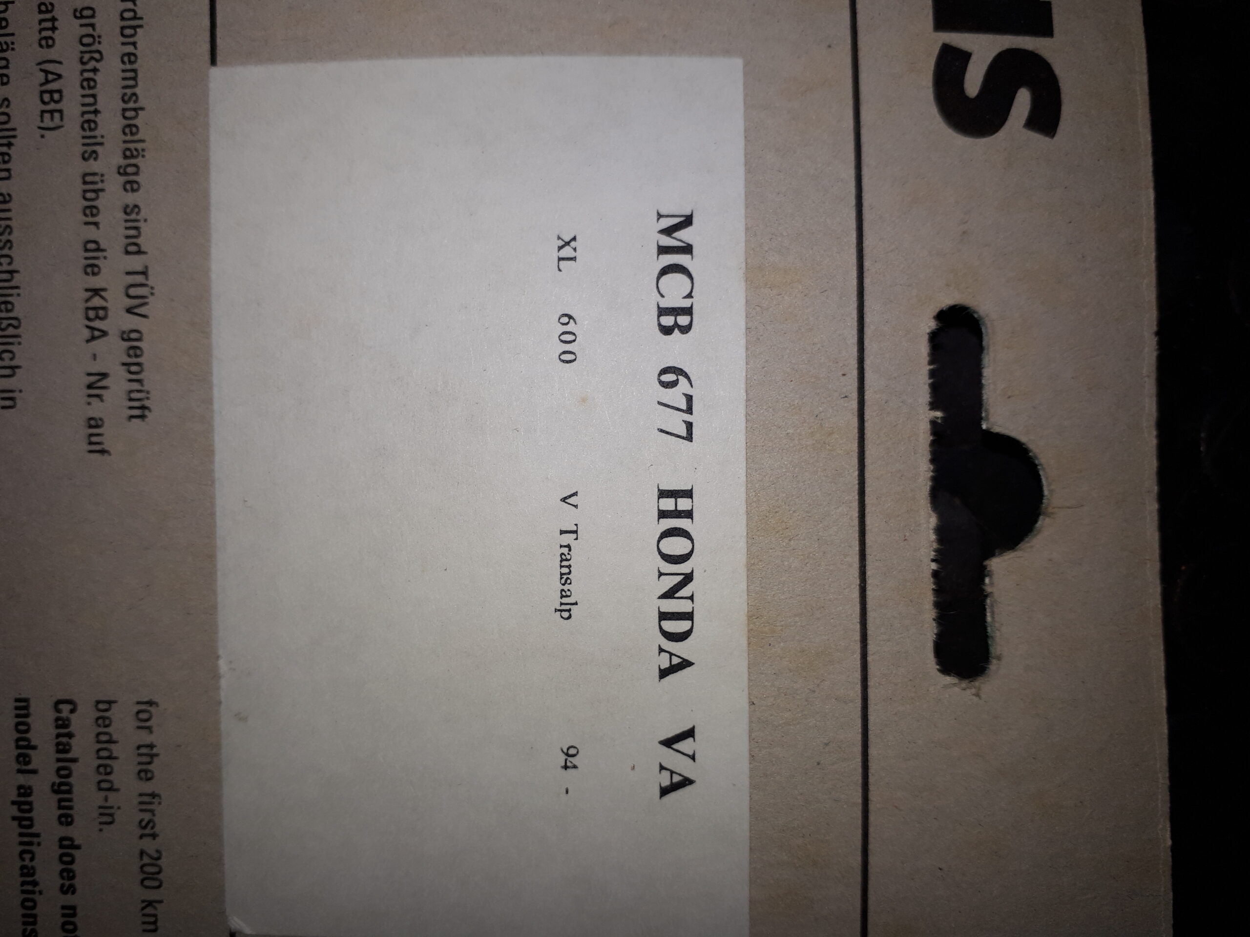 GIRLING MCB677 HONDA, XL600V TRANSALP 94-