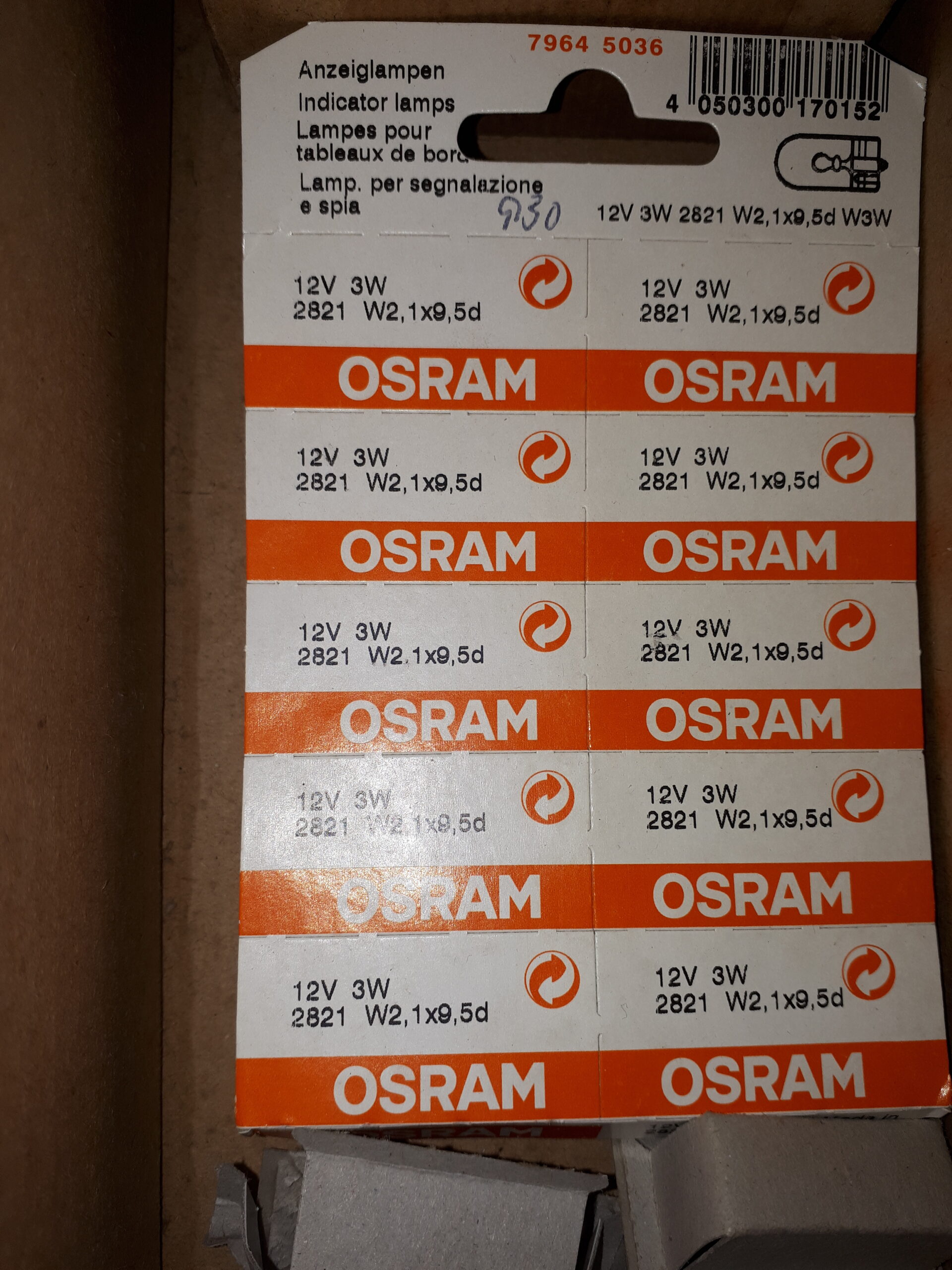 GLÜHBIRNE 12V3W , W21x9,5 Osram 2821